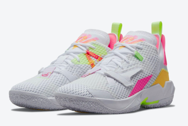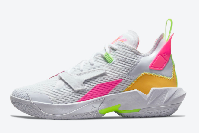 The Jordan Why Not Zer0.4 White/Pink-Volt-Orange is the perfect combination of style, performance, and comfort. Designed for basketball enthusiasts, these sneakers boast a sleek white upper with vibrant pink, volt, and orange accents, making them a fashionable choice both on and off the court. With its innovative design and advanced technologies, these shoes are a must-have for any sneakerhead.