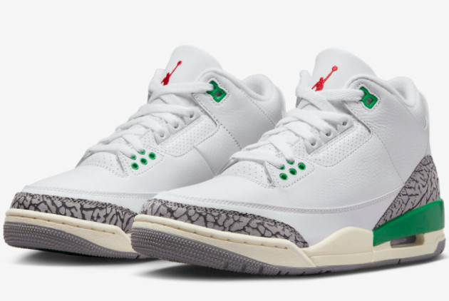 1. Unique Design: The Air Jordan 3 ‘Lucky Green’ features a captivating color scheme with a mixture of white, lucky green, and cement grey. The combination of these colors creates a visually stunning look that effortlessly stands out.