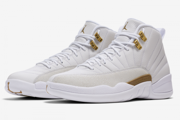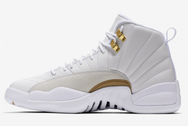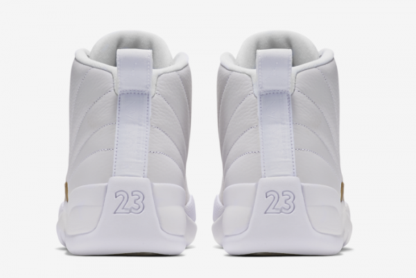 The Air Jordan 12 ‘OVO’ White/Metallic Gold showcases a clean and luxurious design that exudes sophistication. The upper is constructed with premium white leather, providing a sleek and premium look. A metallic gold OVO owl logo is prominently displayed on the shoe’s upper, adding a touch of exclusivity and branding to this already iconic silhouette.