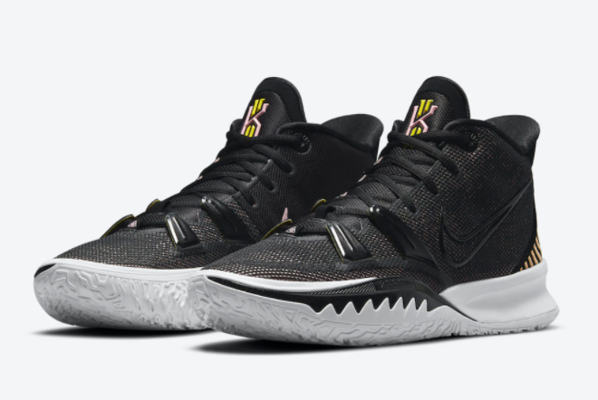 4. Bold Design: The ‘Ripple Effect’ colorway of the Kyrie 7 boasts a captivating aesthetic. The black base is complemented by vibrant pink and yellow accents, creating a visually stunning appearance that reflects Kyrie Irving’s unique style.