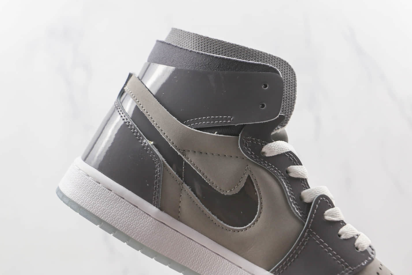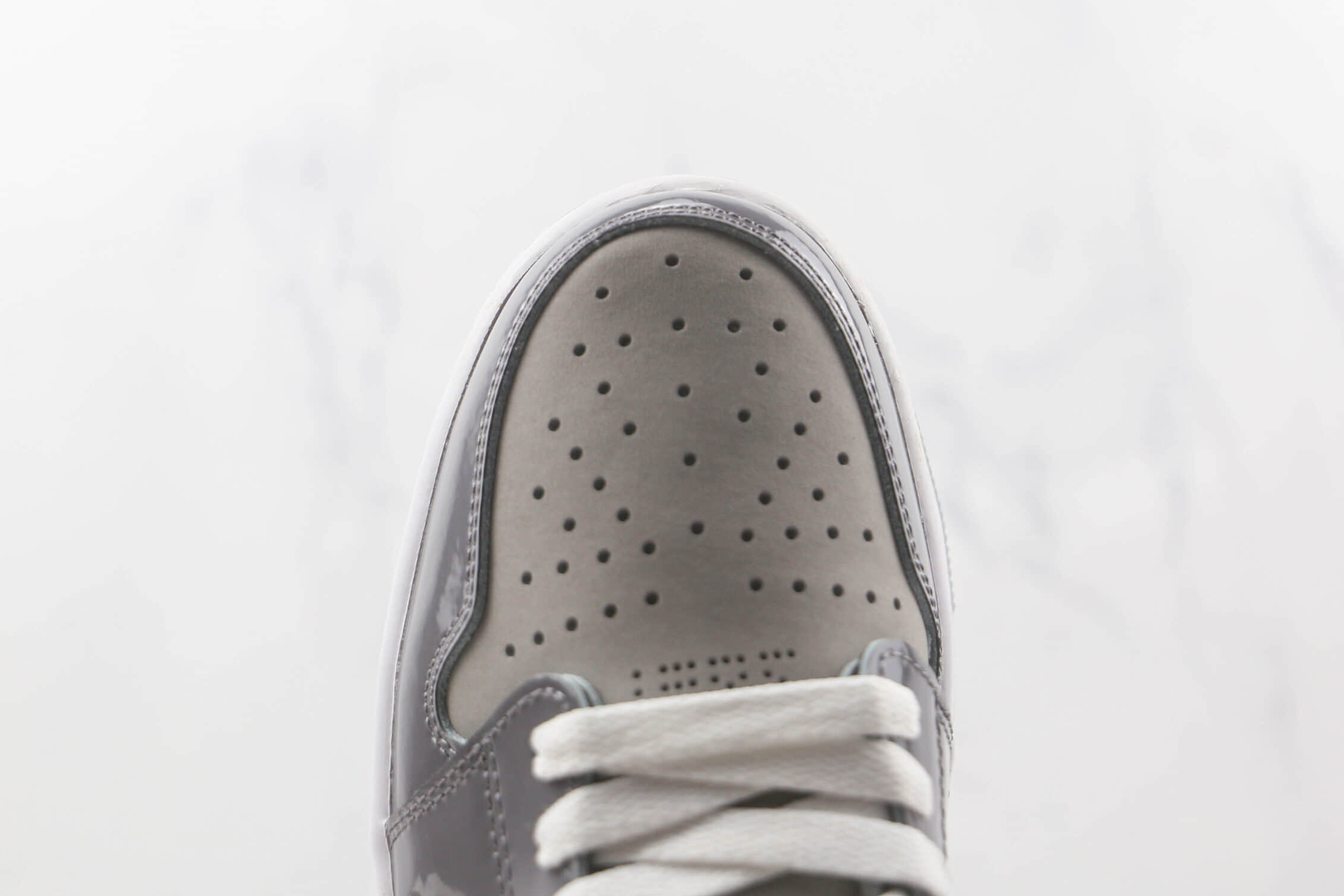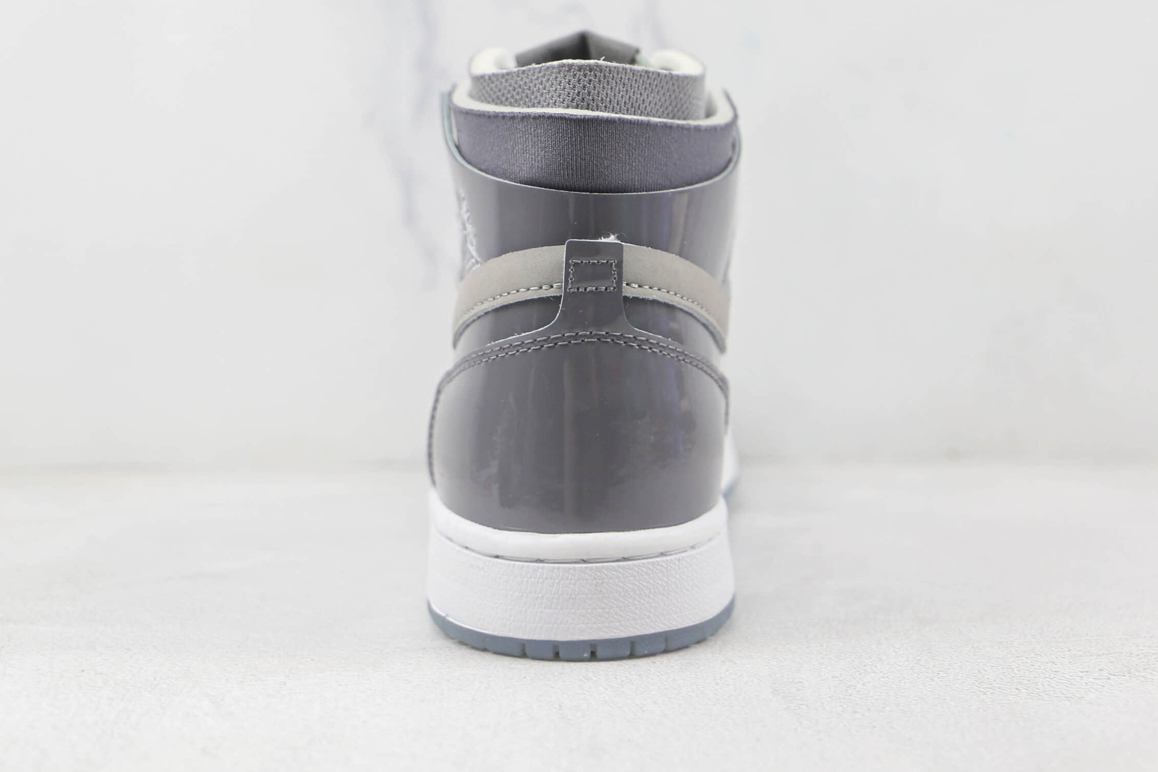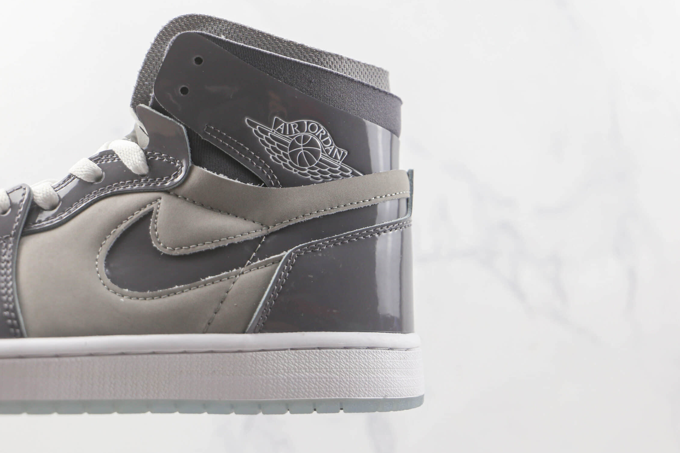 Introducing the stylish and high-performance Air Jordan 1 Zoom CMFT Patent Leather – a remarkable addition to your sneaker collection. This iteration showcases an eye-catching combination of grey and white, making it a versatile and trendy choice for any occasion.