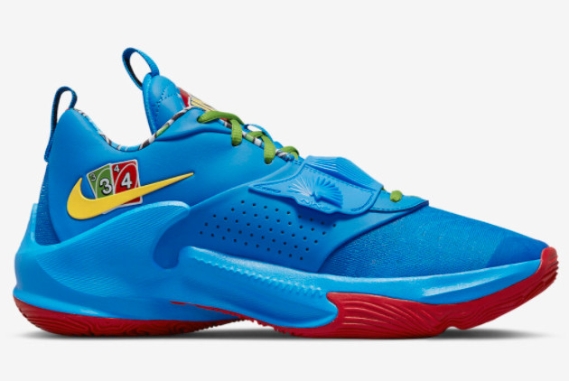 The UNO x Nike Zoom Freak 3 Photo Blue/Black-White-University Red (DC9364-400) is an exciting collaboration between UNO, a renowned streetwear brand, and Nike, the iconic sportswear label. This basketball shoe blends premium materials, innovative technology, and eye-catching design to provide athletes and sneaker enthusiasts with unmatched performance and style.