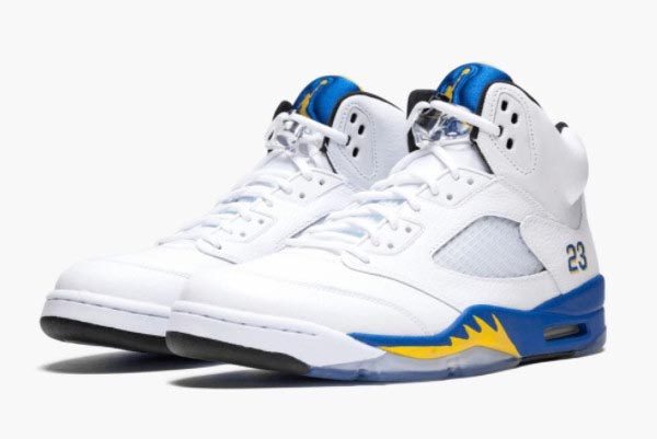 The Air Jordan 5 ‘Laney’ white/varsity maize-varsity royal-black is a must-have for sneaker enthusiasts and Jordan Brand fans alike. Inspired by Michael Jordan’s high school alma mater, the Laney High School, these retro sneakers exude classic style and exceptional performance.