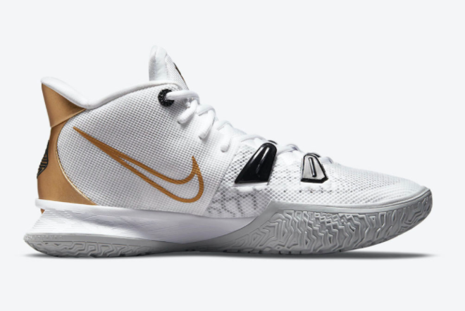 – Color: The Nike Kyrie 7 White/Black-Metallic Gold CQ9326-101 boasts a striking combination of white, black, and metallic gold accents. This color scheme adds a touch of elegance and sophistication to the shoe’s overall appearance.