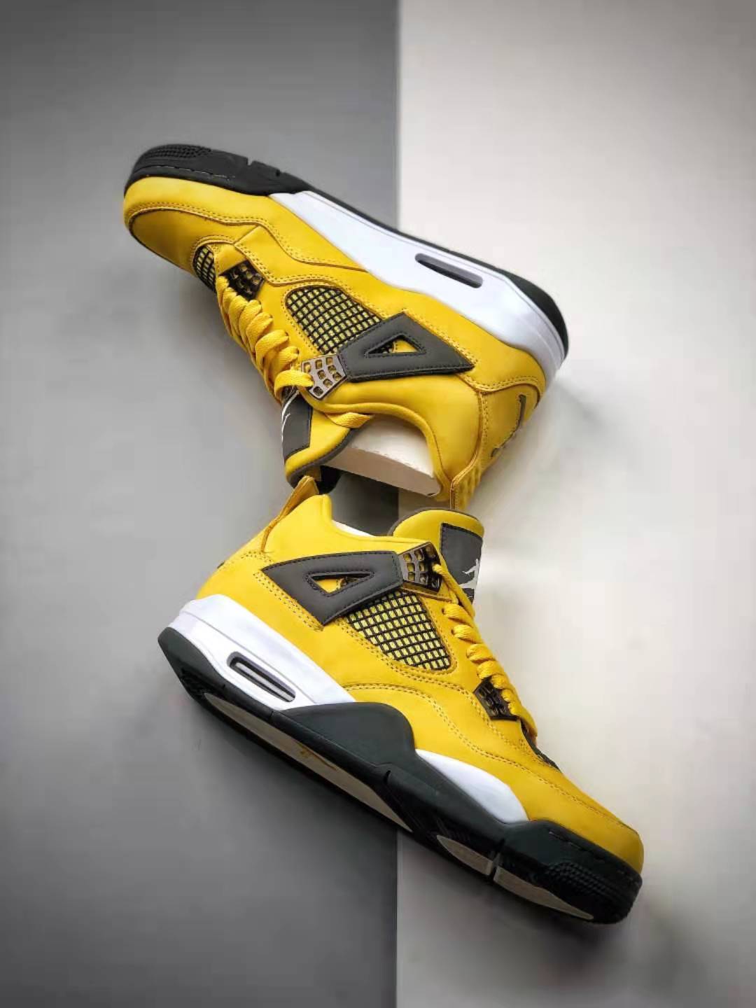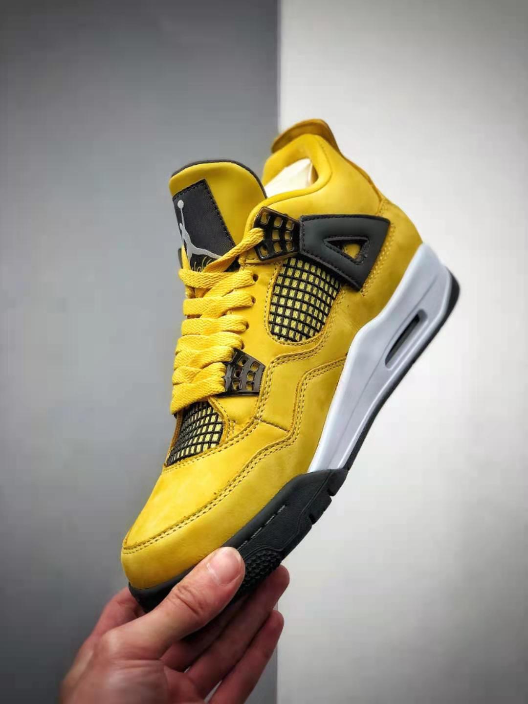 The Air Jordan 4 Retro LS ‘Lightning’ is available in men’s sizing, ensuring a versatile fit for a wide range of individuals. The sneakers weigh approximately 2 pounds, making them lightweight and easy to wear. The yellow and black color scheme is complemented by silver detailing on the lace loops and eyelets, adding a touch of sophistication to the overall design. Furthermore, the Air Jordan 4 Retro LS ‘Lightning’ features a visible Air unit in the heel, adding extra cushioning and comfort to your every step.