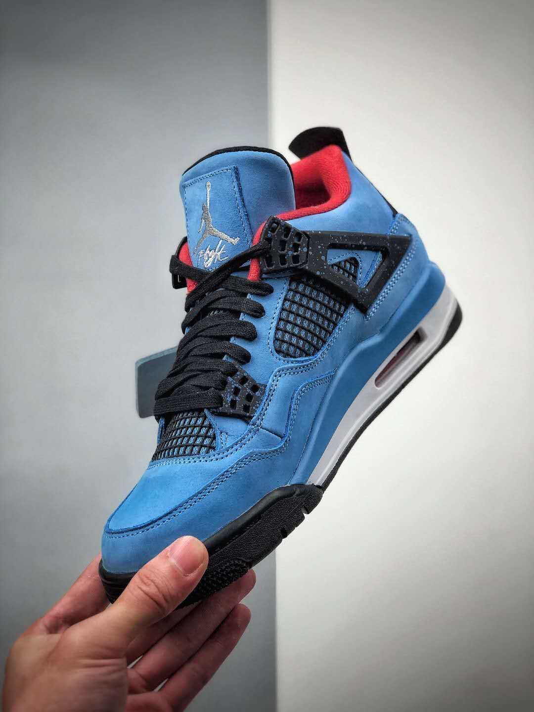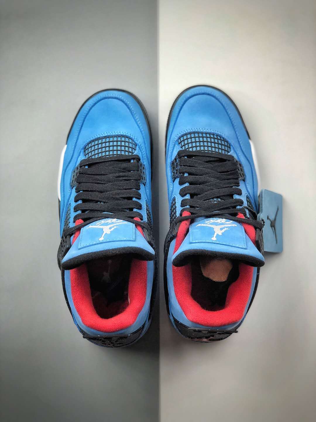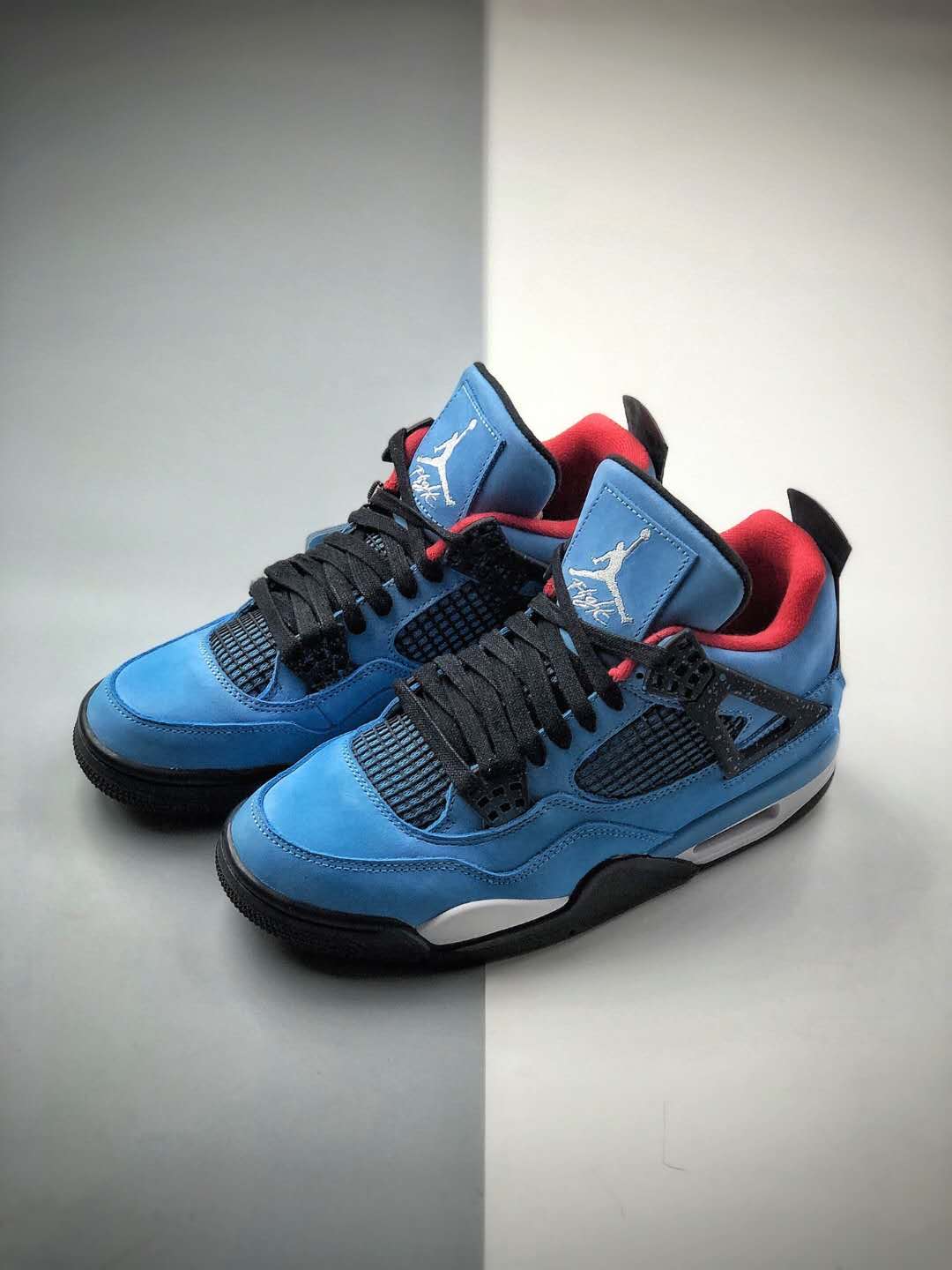 1. Unique Design: The Travis Scott x Air Jordan 4 Retro ‘Cactus Jack’ showcases a one-of-a-kind design that sets it apart from the rest. This sneaker features a vibrant blue upper with black, white, and red accents, creating a visually striking aesthetic that demands attention.