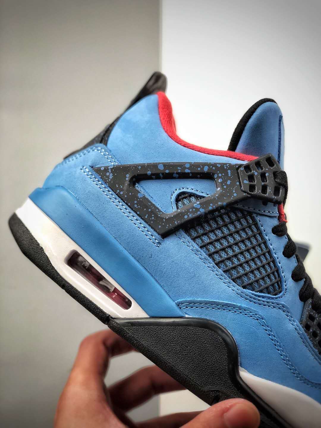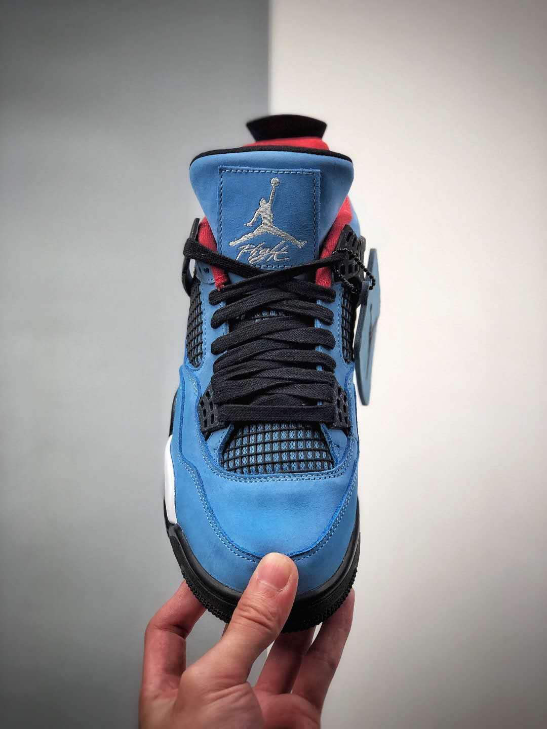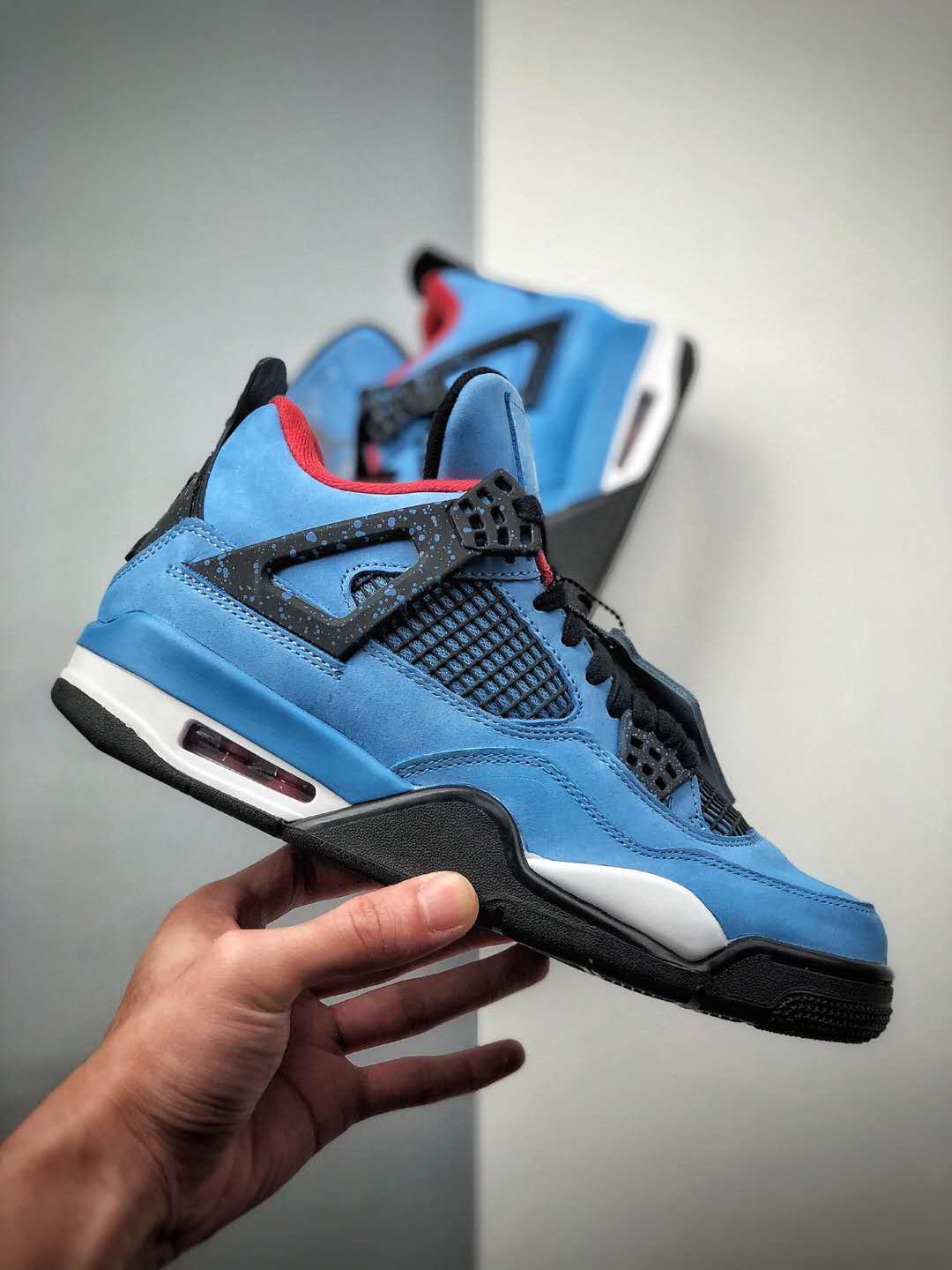 1. Unique Design: The Travis Scott x Air Jordan 4 Retro ‘Cactus Jack’ showcases a one-of-a-kind design that sets it apart from the rest. This sneaker features a vibrant blue upper with black, white, and red accents, creating a visually striking aesthetic that demands attention.