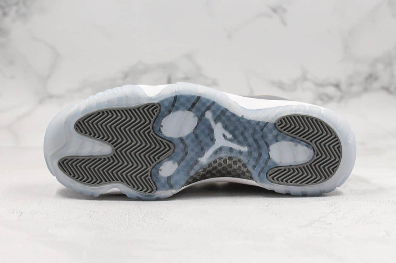 2. Iconic Design: The ‘Cool Grey’ colorway adds a touch of sophistication to the classic Air Jordan 11 silhouette. The shoe features a cool grey upper with patent leather overlays, perfectly complemented by a crisp white midsole and translucent outsole. This iconic design is sure to turn heads wherever you go.