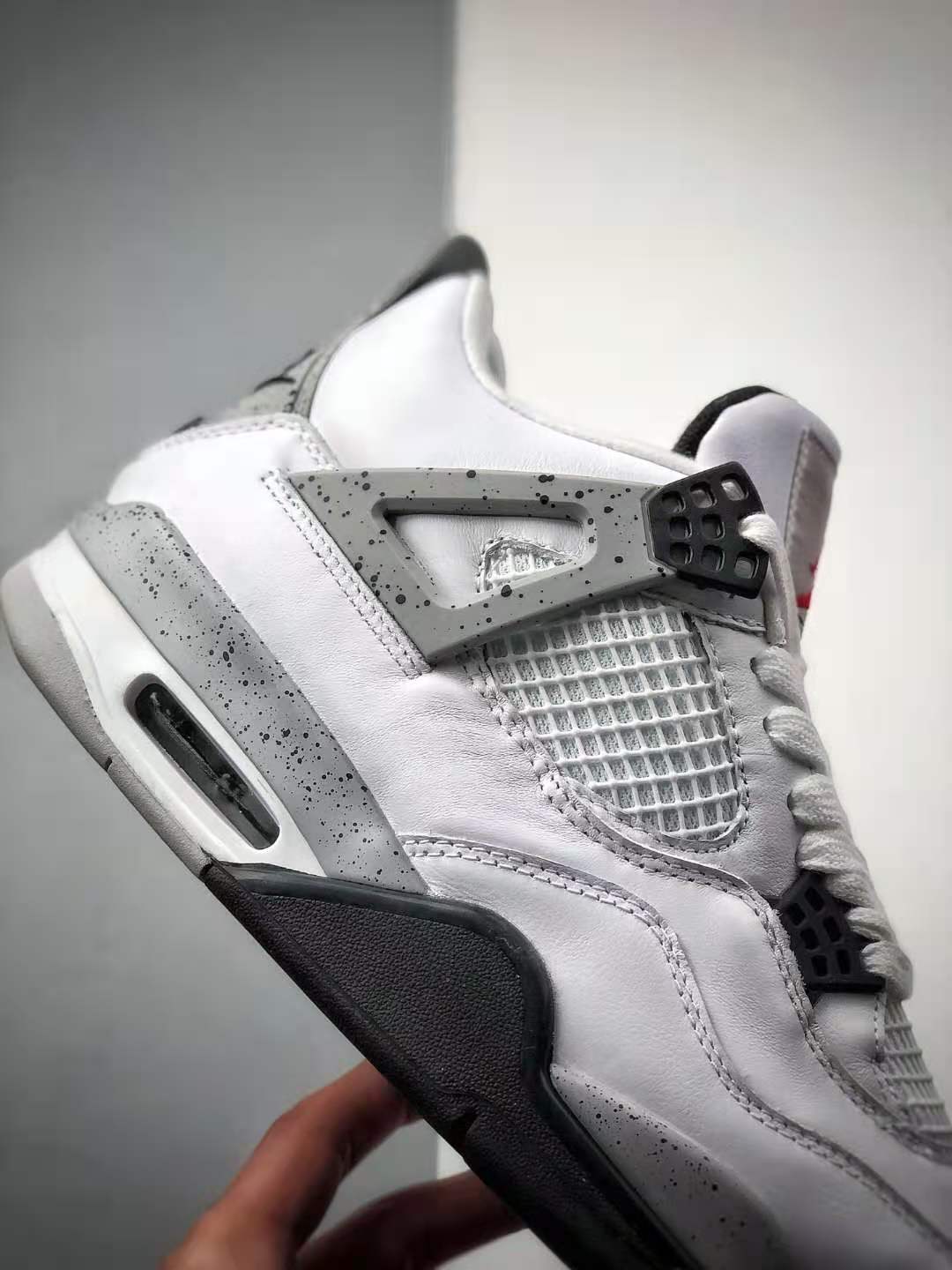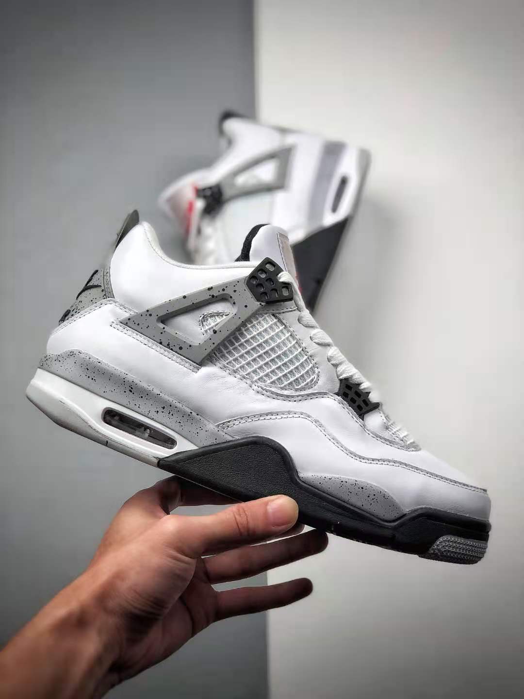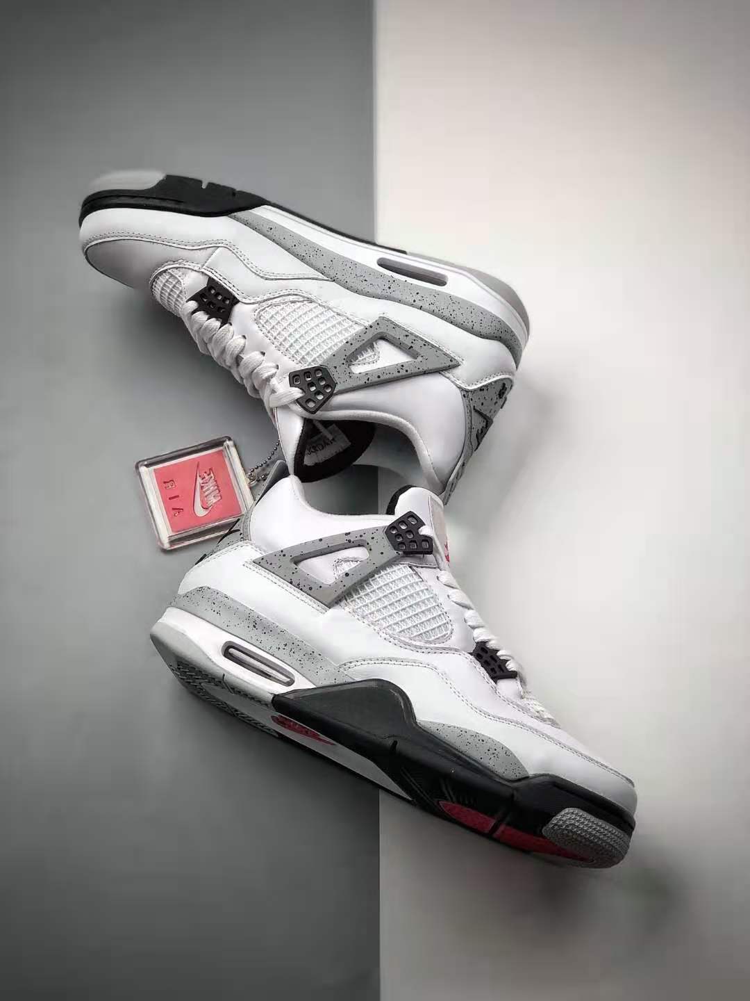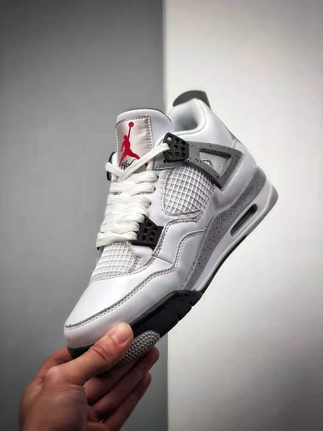 3. Versatile Colorway: The ‘White Cement’ colorway of this Air Jordan 4 Retro OG adds a touch of sophistication to any outfit. The clean white upper is complemented by black accents and grey speckles on the midsole, offering a subtle yet eye-catching contrast.