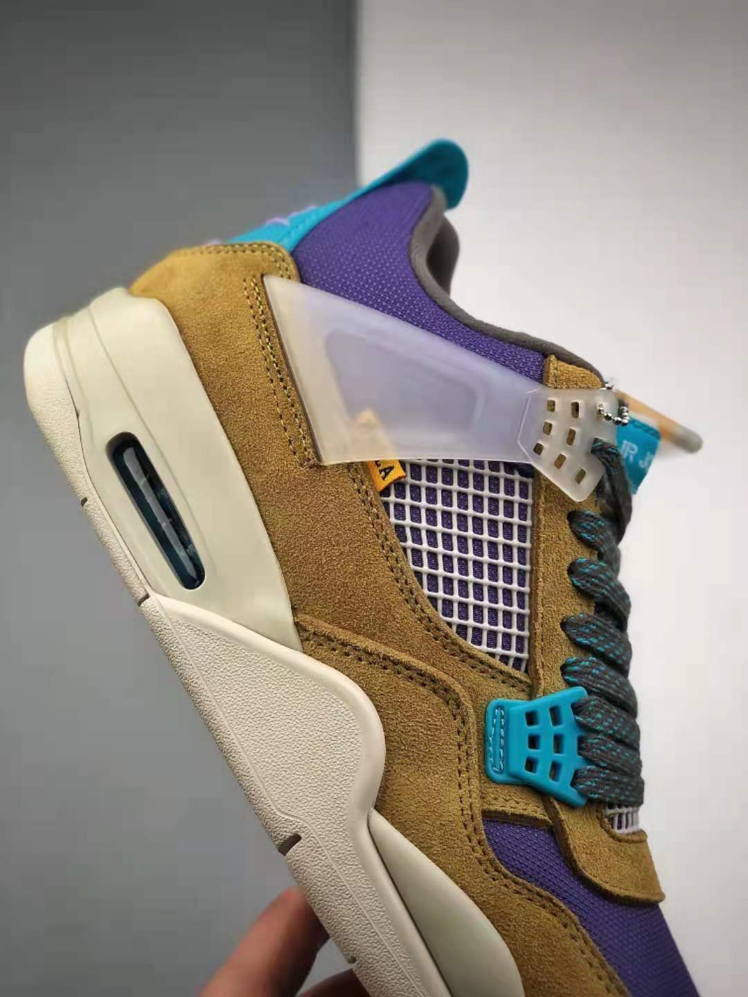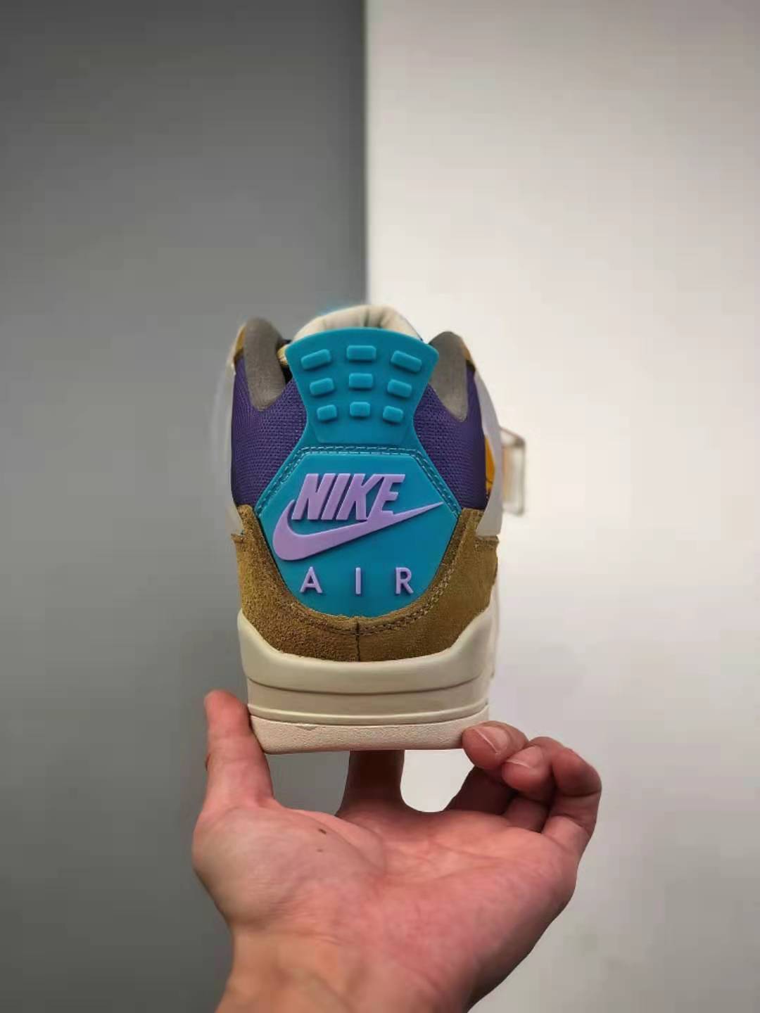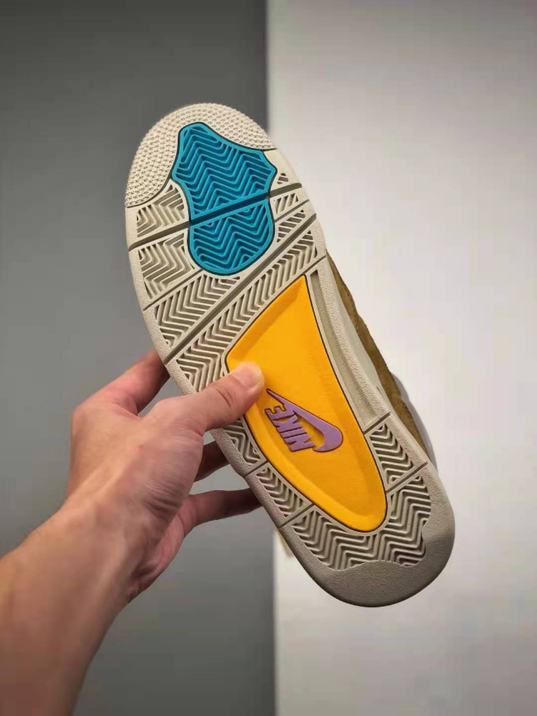 The Union LA x Air Jordan 4 Retro ‘Desert Moss’ DJ5718-300 features a visible Air unit in the heel, providing superior cushioning and impact absorption. The shoe also incorporates a lace-up closure system, allowing for a secure and customizable fit. With a rubber outsole, this sneaker ensures exceptional traction on various surfaces.