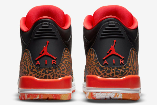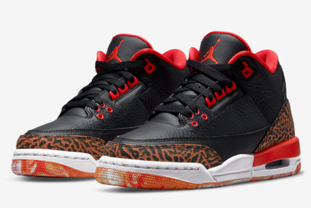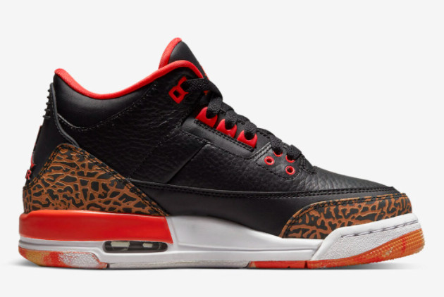 The Air Jordan 3 ‘Kumquat’ is available in men’s sizes, ranging from US 7 to 13. It features a black, kumquat, team orange, and white colorway, offering a bold and eye-catching aesthetic. The shoe’s leather upper ensures durability, while the rubber outsole provides optimal traction on various surfaces. Its padded collar and cushioned midsole offer superior comfort, allowing for extended wear without discomfort. The lace closure allows for a customizable and secure fit.