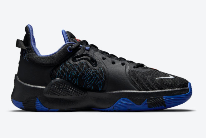 The Nike PG 5 ‘Away’ Black/Blue-Red CW3146-004 features a durable rubber outsole with a multi-directional traction pattern, ensuring exceptional grip on various court surfaces. The shoe is available in a range of sizes to accommodate different foot types. The distinctive color palette and design details make these sneakers a stylish choice for both on-court performance and off-court fashion. The Nike branding on the tongue and heel adds a touch of authenticity to these high-quality basketball shoes.