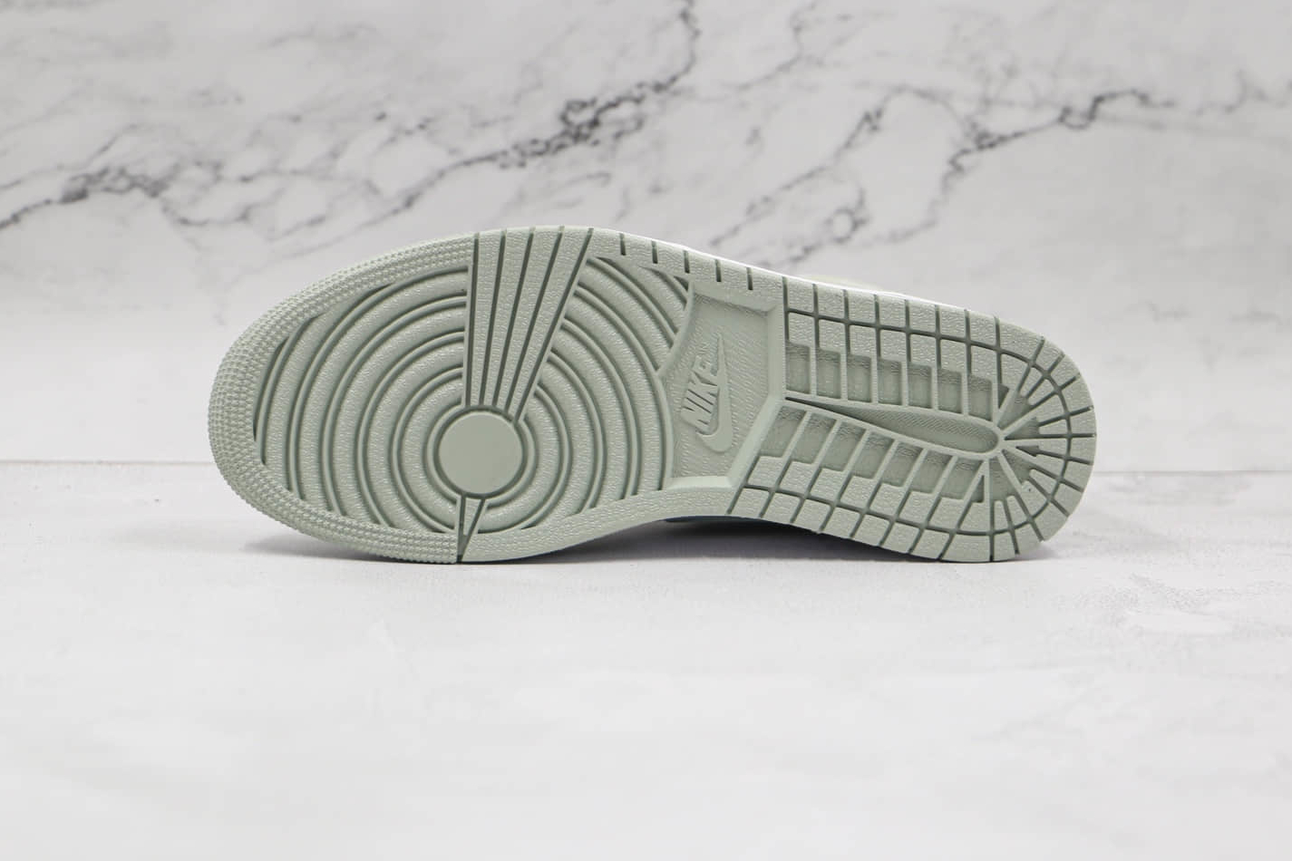 1. Distinctive Color Palette: The ‘Seafoam’ colorway, featuring hues of seafoam green, sail, and black, gives this Air Jordan 1 a unique and eye-catching appearance. The color combination adds a touch of freshness to your sneaker rotation.